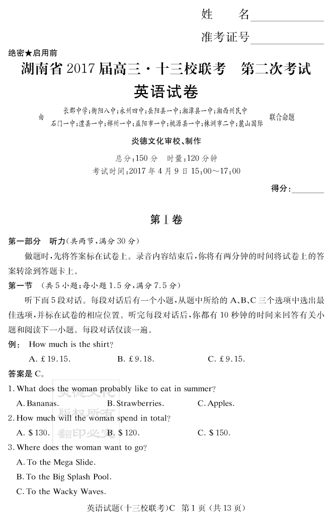 上一篇:【文綜】炎德英才大聯(lián)考2017長郡中學高三8次月考(十三校聯(lián)考二)