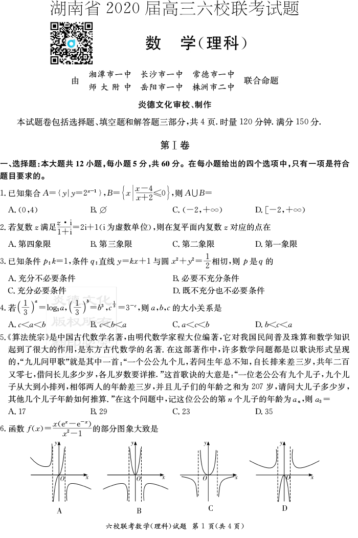 下一篇:【理綜】湖南省2020屆高三六校聯考(附中模擬一)