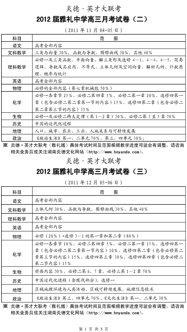 來源:本站原創點擊:2011-09-25 11:19:59收藏本文當前位置:考試范圍 雅禮中學 高三 正文