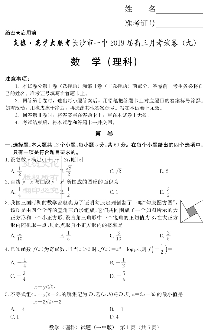 【理數】炎德英才大聯考2019長沙一中高三9次月考