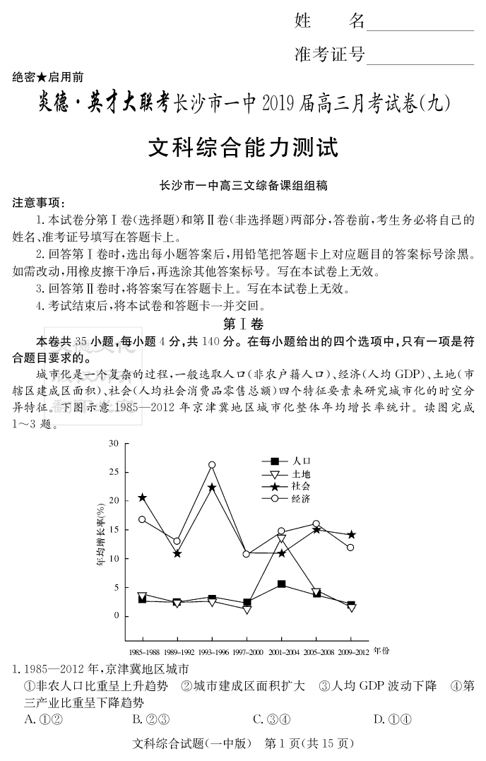 2026長郡中學新高考考前小題沖刺訓練·地理