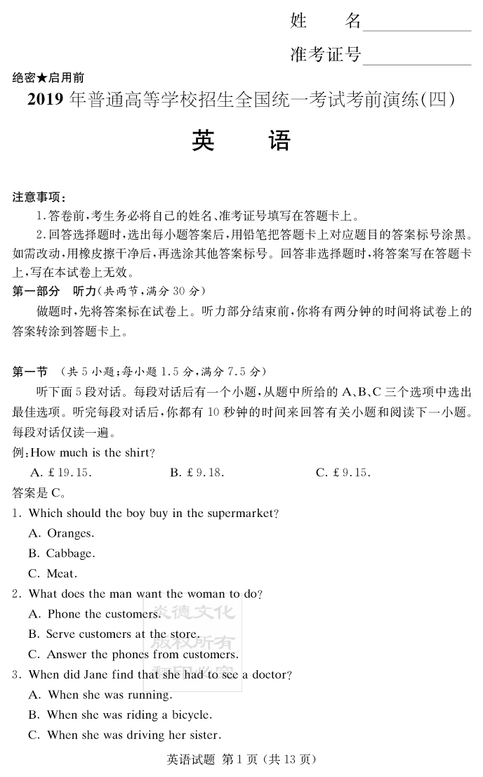 上一篇:【文綜】2019年普通高等學校招生全國統一考試考前演練(四)