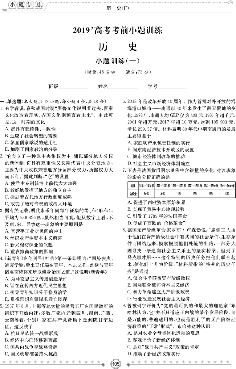 模塊周周清·高中歷史·必修中外歷史綱要(下)