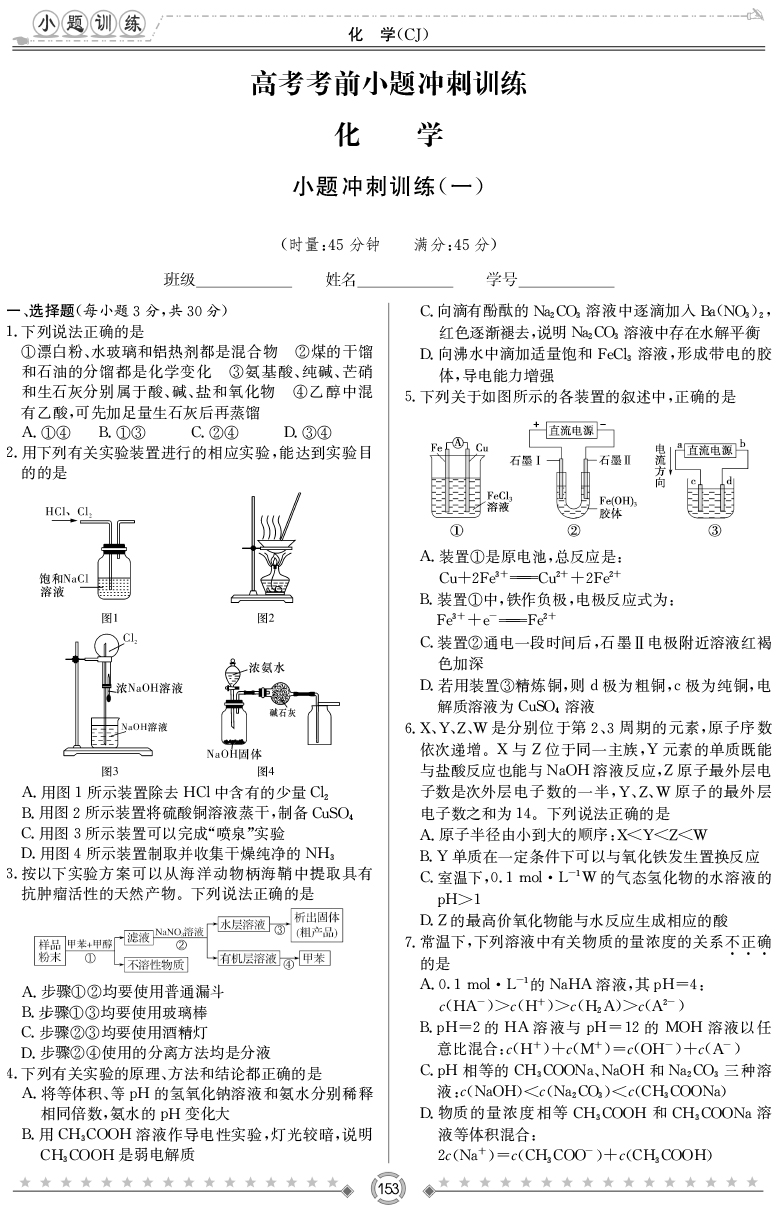 【化學】長郡中學2019高考考前小題沖刺訓練