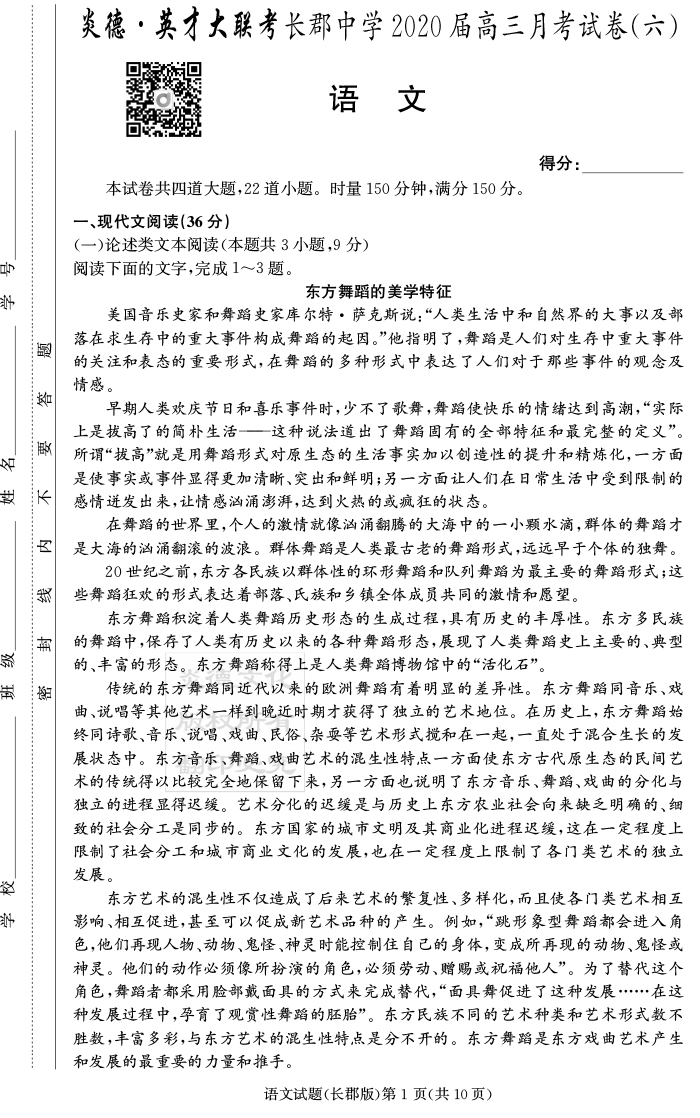 2026長郡中學新高考考前小題沖刺訓練·語文