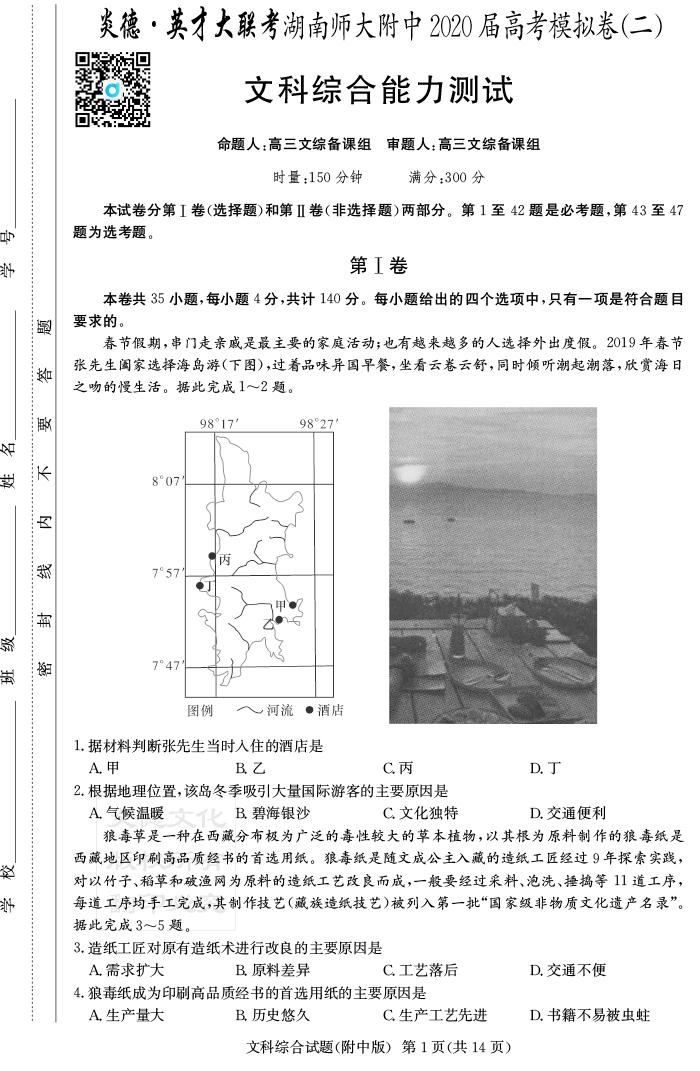 2026長郡中學新高考考前小題沖刺訓練·地理
