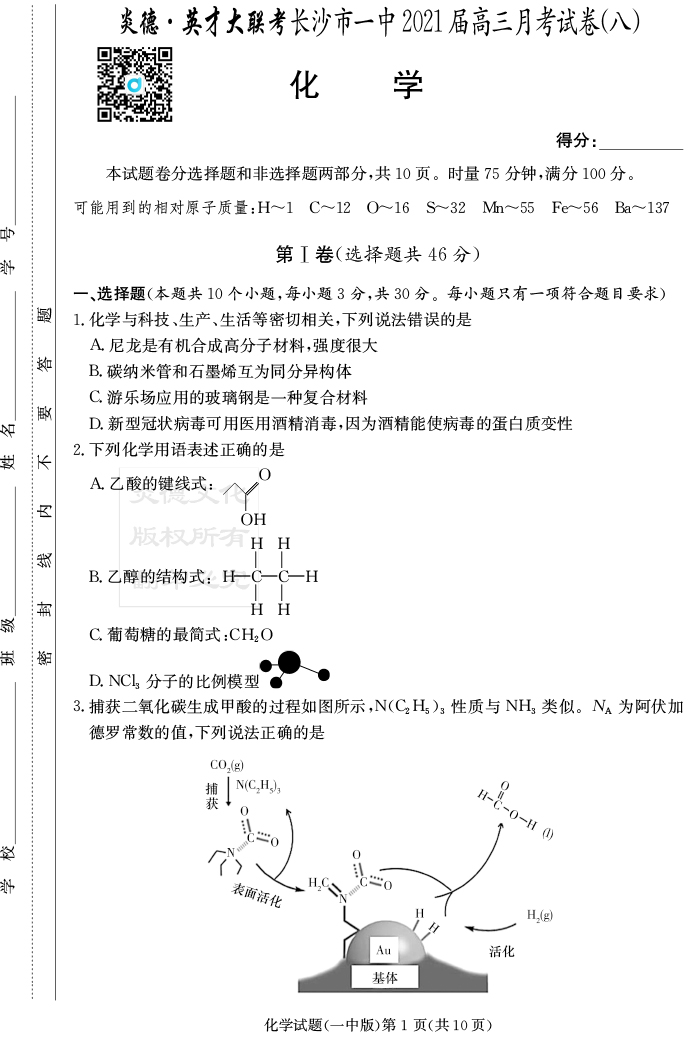 2026長郡中學新高考考前小題沖刺訓練·化學