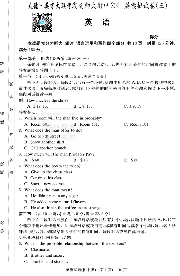 下一篇:【語文】炎德英才大聯考2021屆湖南師大附中高三10次月考(模擬三)