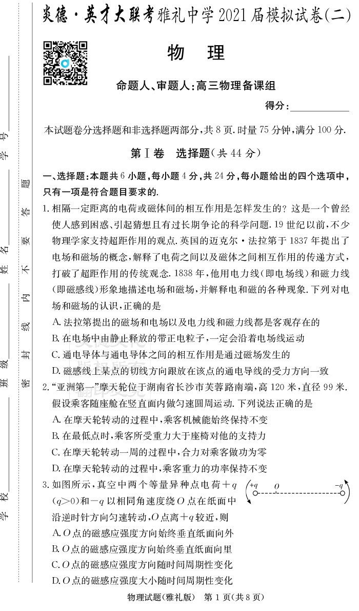 2026年長郡中學備考寶典(高考考前寶典)·物理傾向