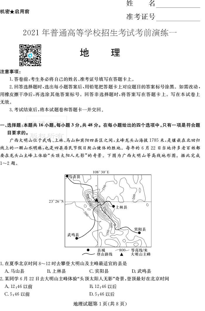 2026湖南師大附中新高考考前小題訓練·地理