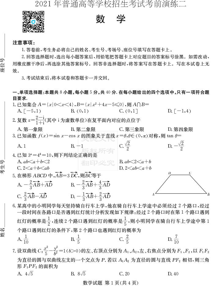 上一篇:【生物】2021年普通高等學校招生全國統一考試考前演練(二)