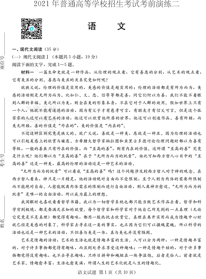 下一篇:【政治】2021年普通高等學校招生全國統一考試考前演練(二)