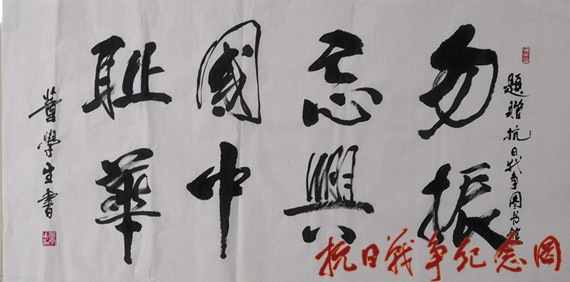 長沙市關工委主任董學生為抗日戰爭圖書館題字(前排左起:唐得之、董學生、何譽軍)