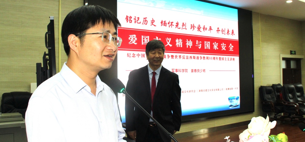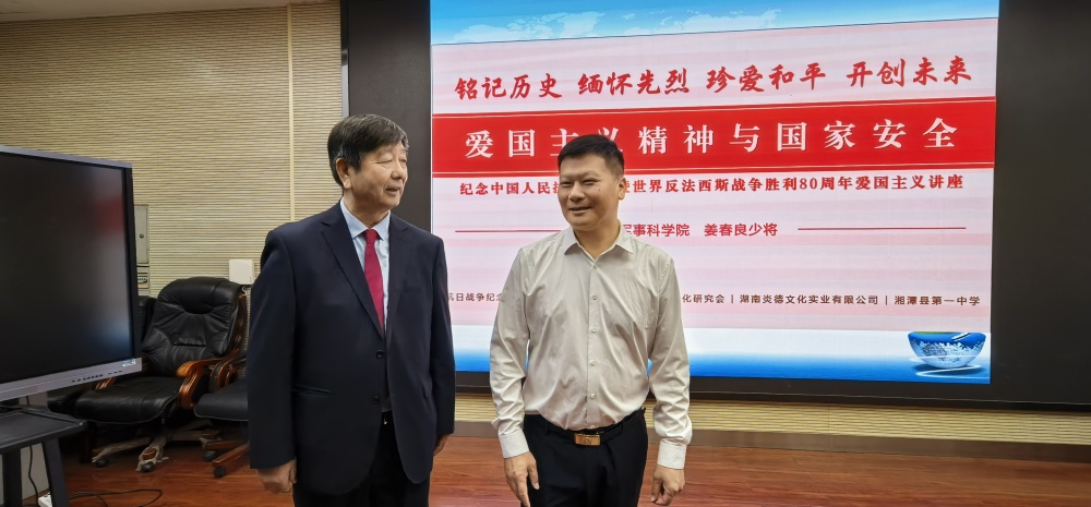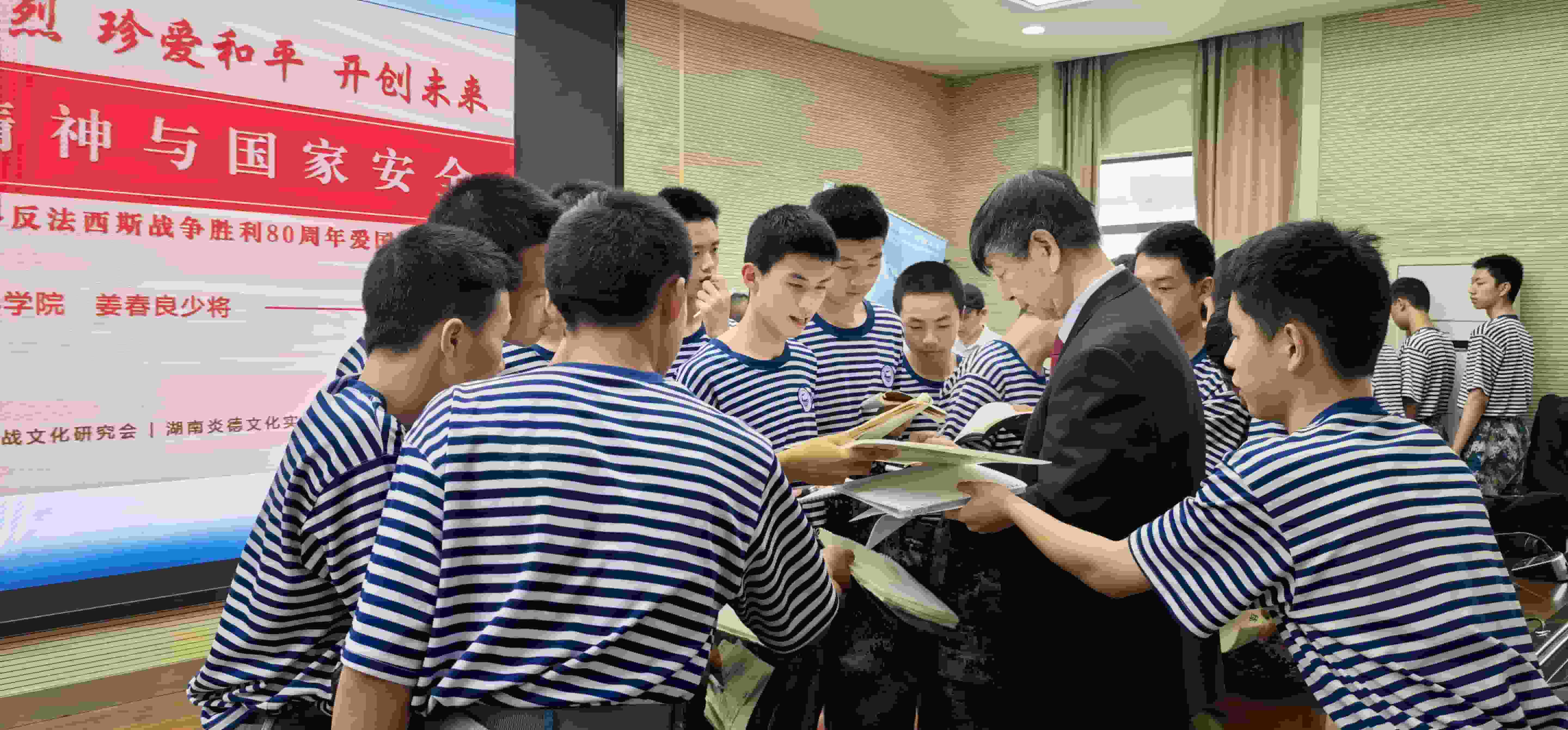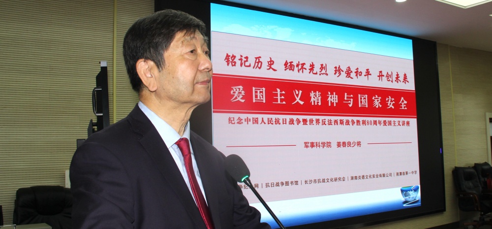為紀念中國人民抗日戰爭暨世界反法西斯戰爭勝利80周年,弘揚偉大抗戰精神,深化青少年愛國主義教育,湖南炎德文化實業有限公司、抗日戰爭紀念網、抗日戰爭圖書館、長沙市抗戰文化研究會決定聯合主辦“銘記歷史 緬懷先烈 珍愛和平 開創未來”愛國主義教育講座,邀請中國人民解放軍軍事科學研究院研究員姜春良少將主講《愛國主義和國家安全》。