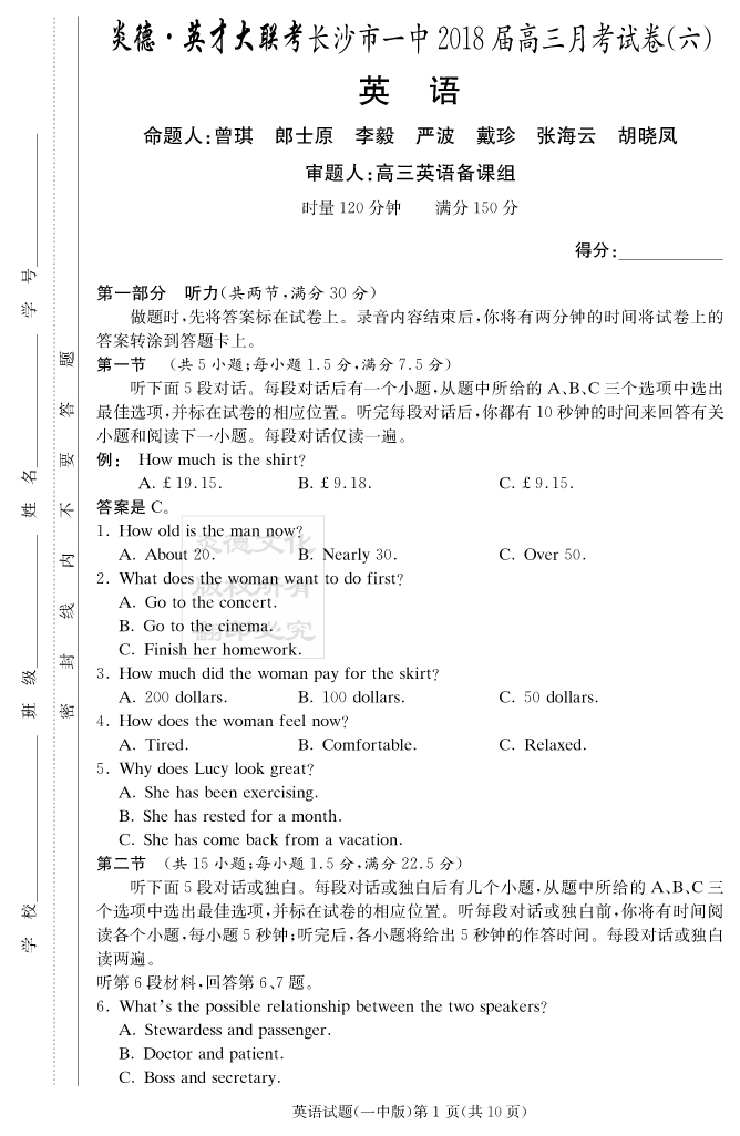 上一篇:【物理】炎德英才大聯考2018長沙一中高三6次月考