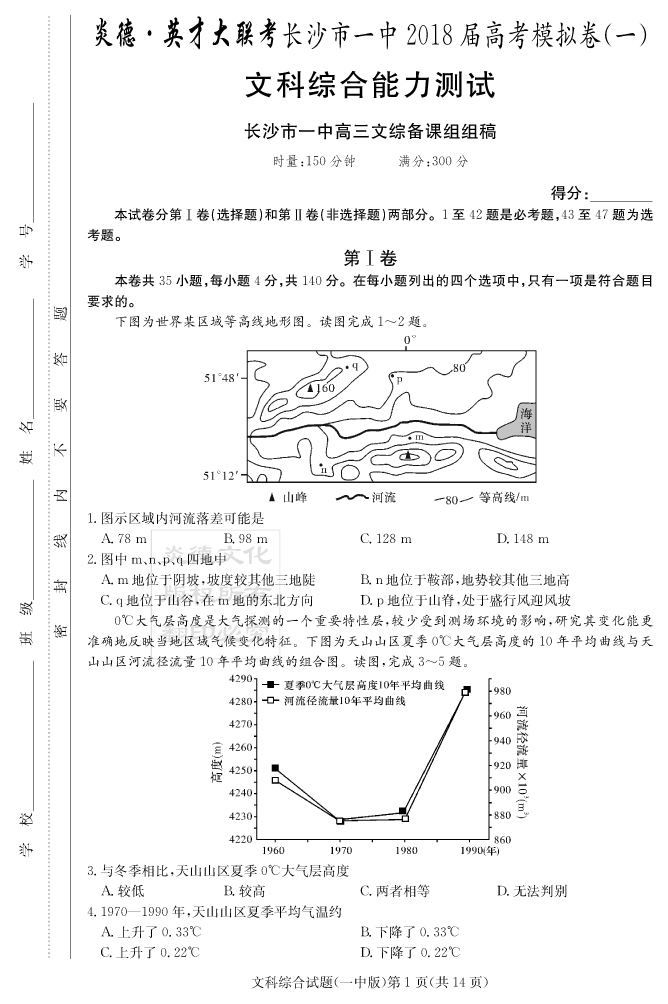 2026湖南師大附中新高考考前小題訓練·地理